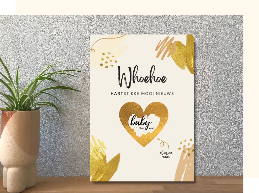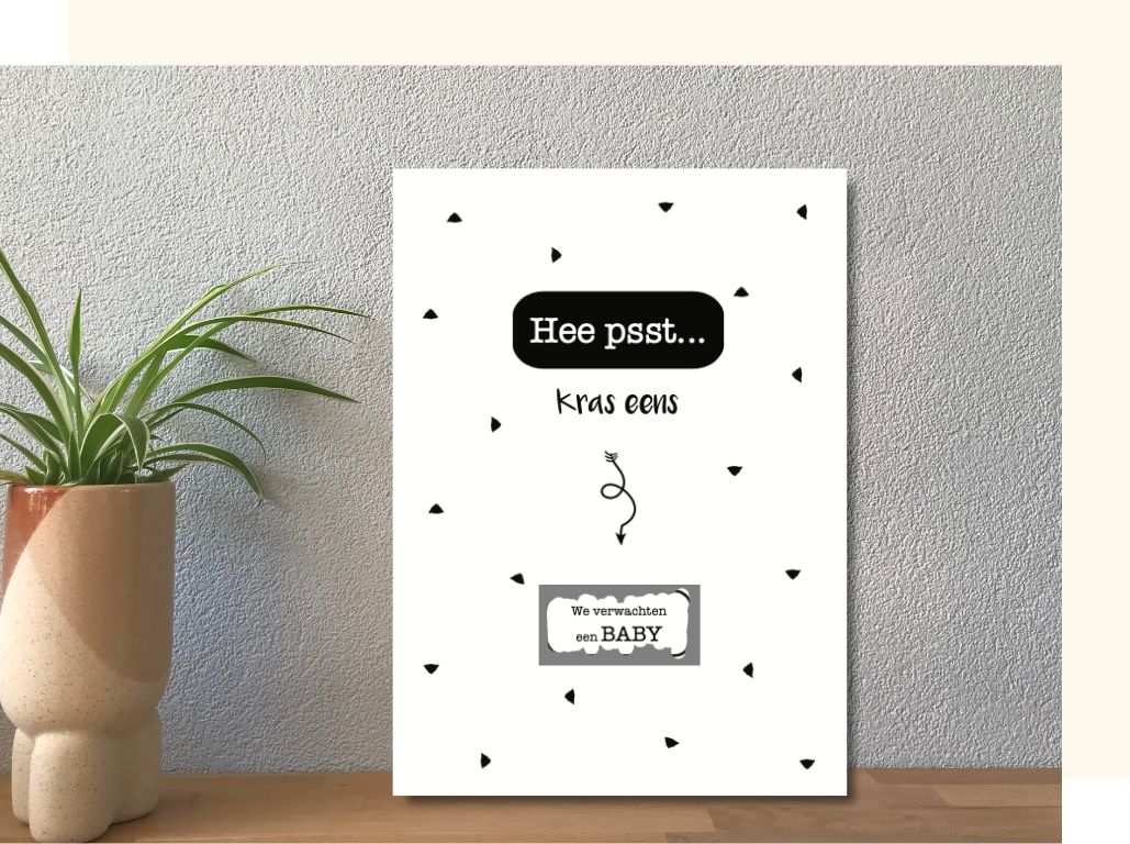 Grote kans dat er op de verpakking een sticker zit met het bekende babylogo. Zit jij daar niet op te wachten? Bijvoorbeeld omdat je kraskaarten hebt besteld en wilt voorkomen dat nieuwsgierige buren of de oppas (lees: je moeder) door heeft dat er een ‘baby-bestelling’ binnenkomt? Geef het dan even aan mij door na je bestelling in het opmerkingenvak of door een mailtje te sturen naar info@babyshowerlatenorganiseren.nl. Dan zorg ik ervoor dat je bestelling gewoon in een blanco verpakking gepost wordt.