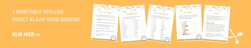 5. De voorspellings-invulkaarten die gegarandeerd zorgen voor leuke gesprekken. Verzamel de kaarten na afloop en geef cadeau aan de mama to be: een leuke herinnering voor later.