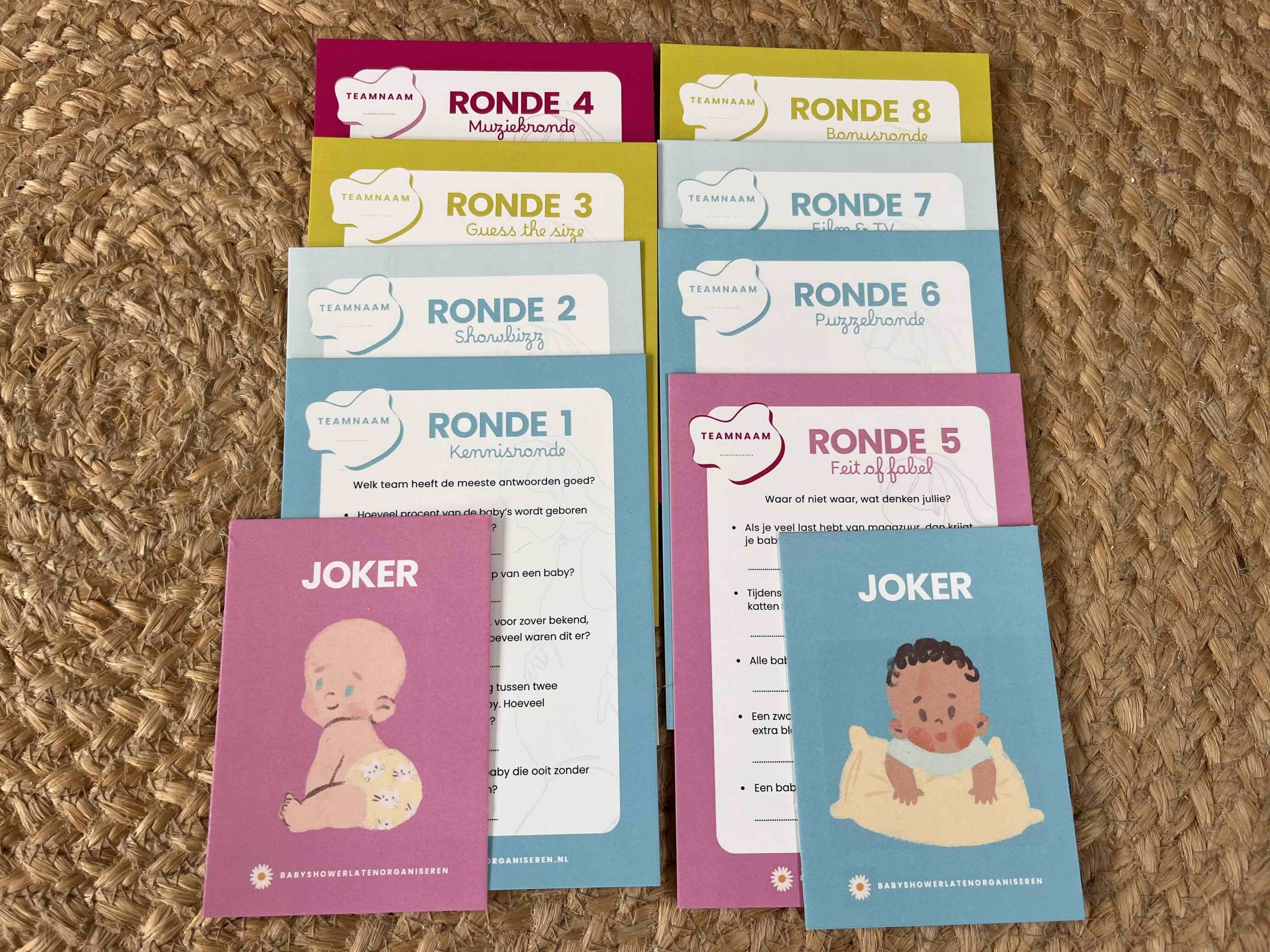 Heb jij de Pubquiz: de Speciale Babyshower Editie besteld en zijn jullie met meer dan 10 á 15 personen? Geen probleem! Hier bestel je eenvoudig extra spelformulieren, jokers en benodigdheden voor de bonusronde mee zodat iedereen lekker kan meespelen.